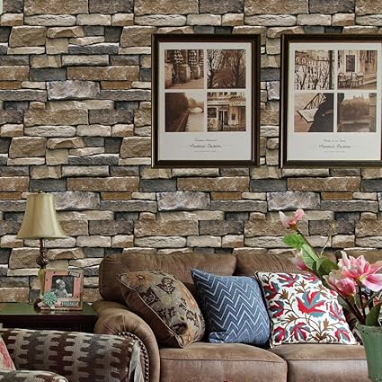 6803 Vintage Faux Brick Wallpaper Rolls Yellow Dark Gray Rust Stone Stacked Wall Paper Kitchen Tv Backgroud Home Decoration 20 8 X 393 7